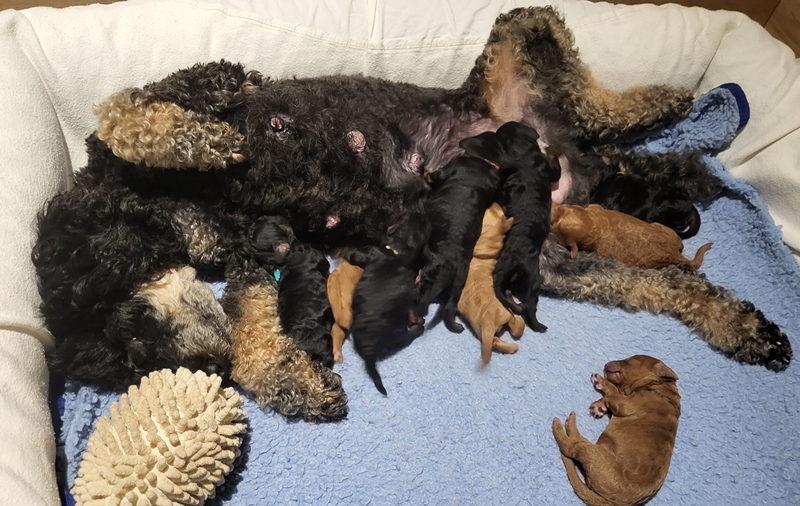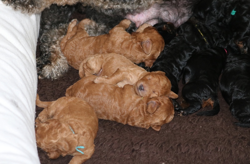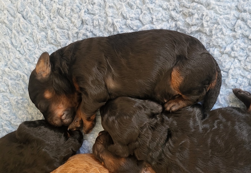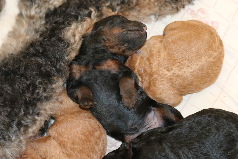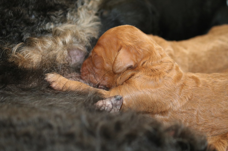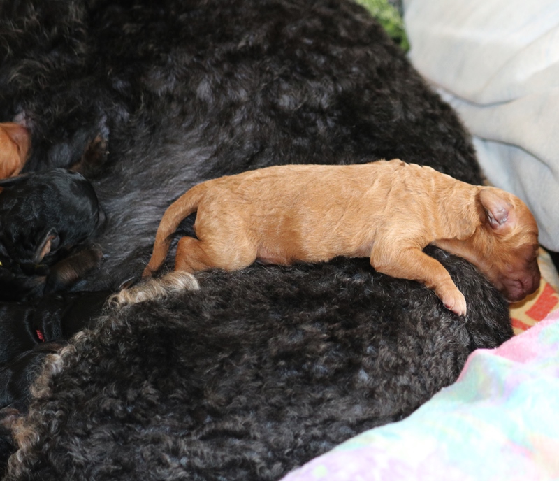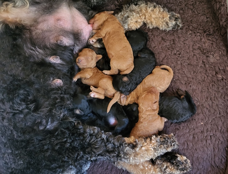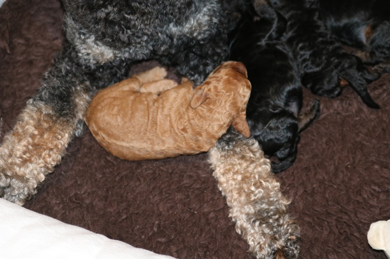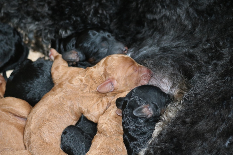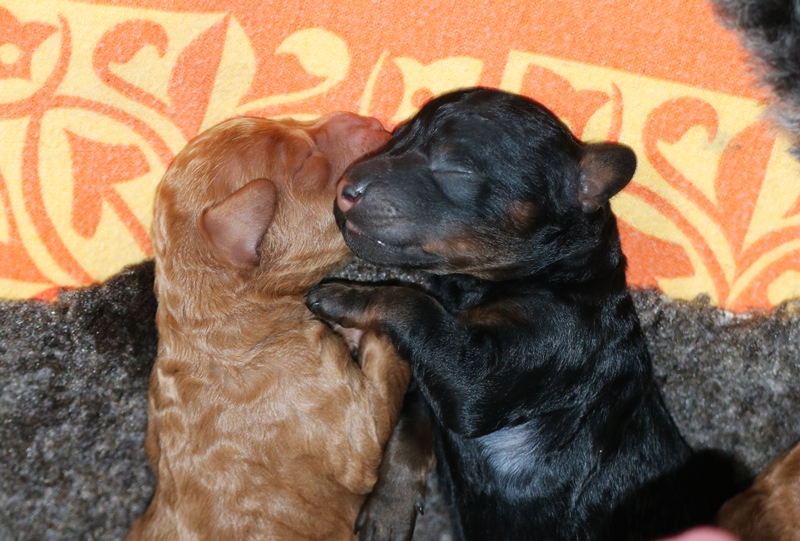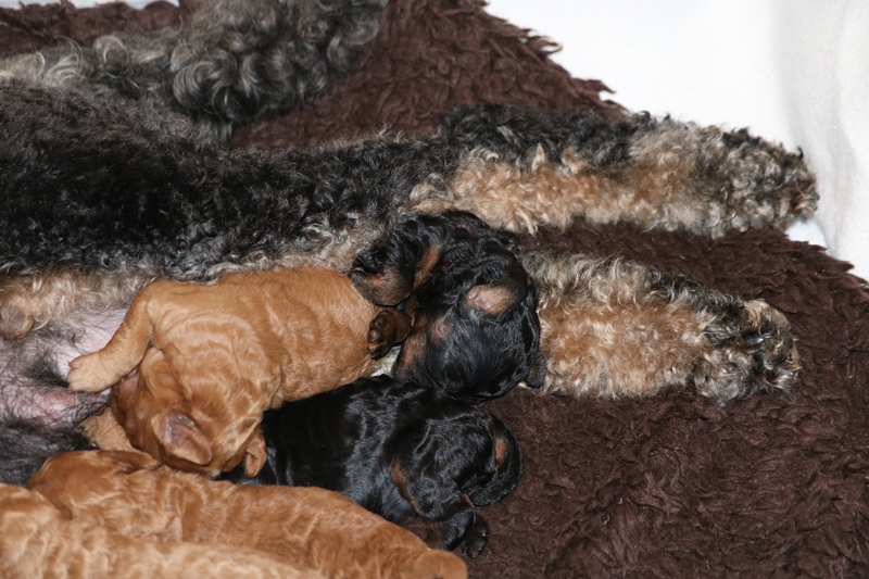 Damit ist die erste Lebenswochen der neun neuen Dreampudel vollendet und ich kann nur hoffen, dass es genau so weitergeht. Alle haben gut zugenommen, Mathilda ist sehr ausgeglichen und so sind alle Zwei- und Vierbeiner gelassen.... was will man also mehr?