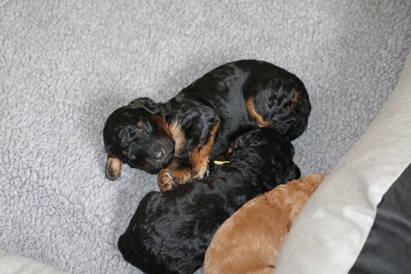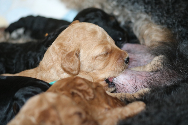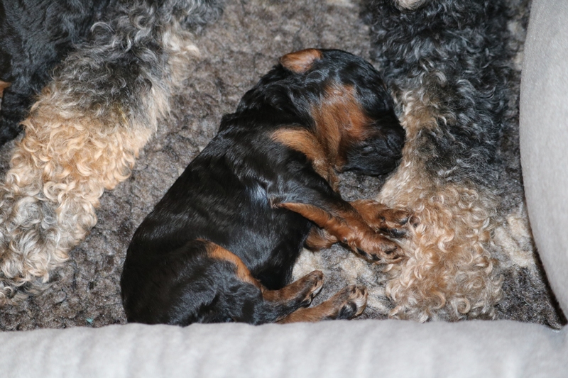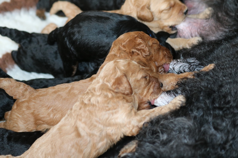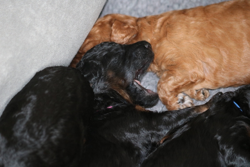 Der Tagesablauf der Welpen ist von viel Schlaf und gefühlt noch mehr Nahrungsaufnahme geprägt.