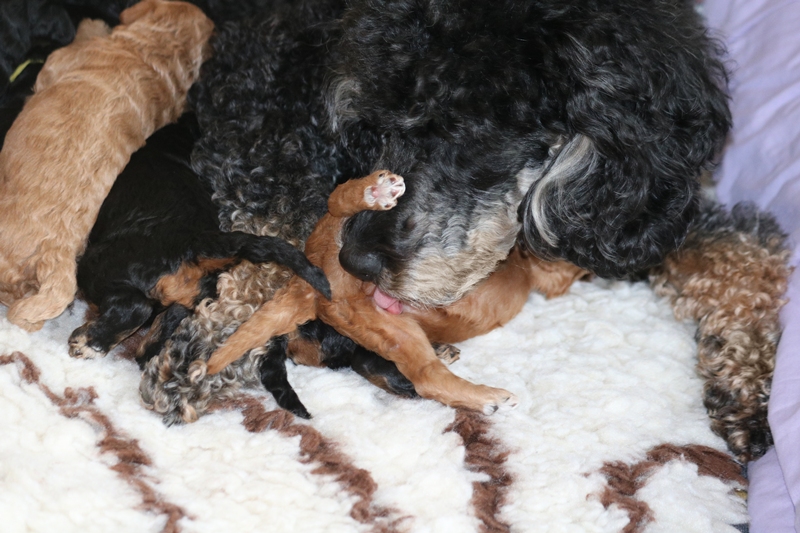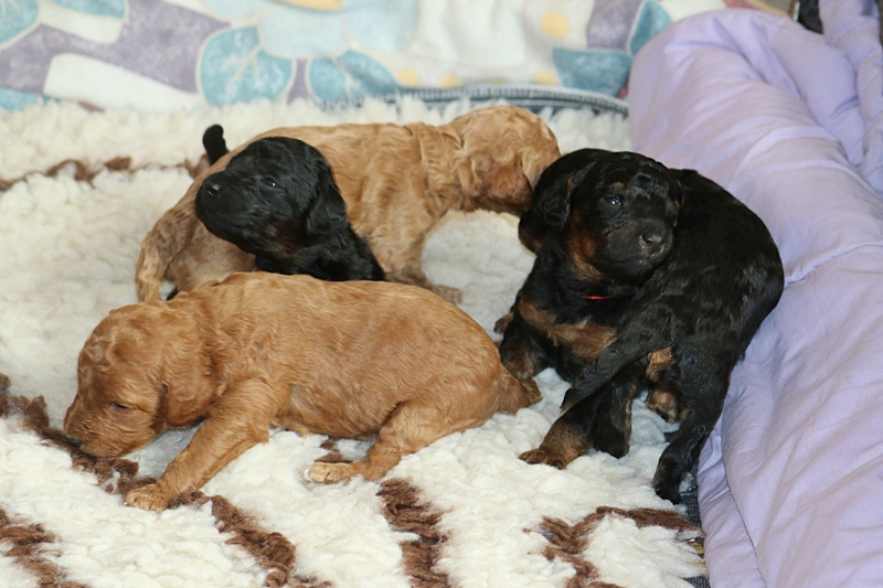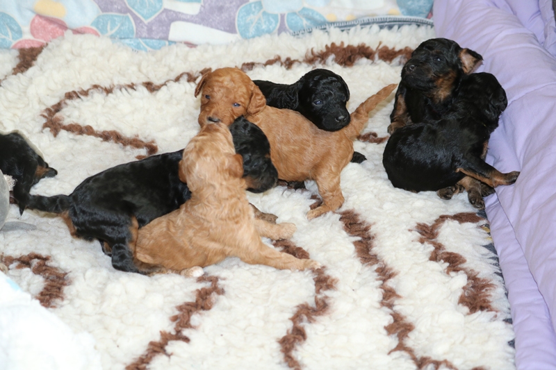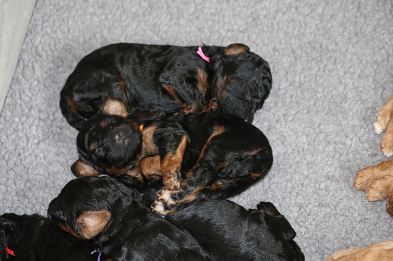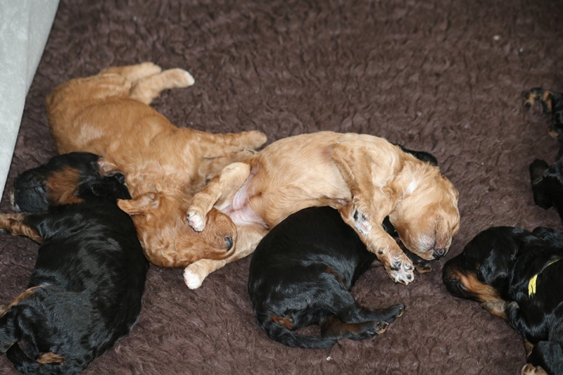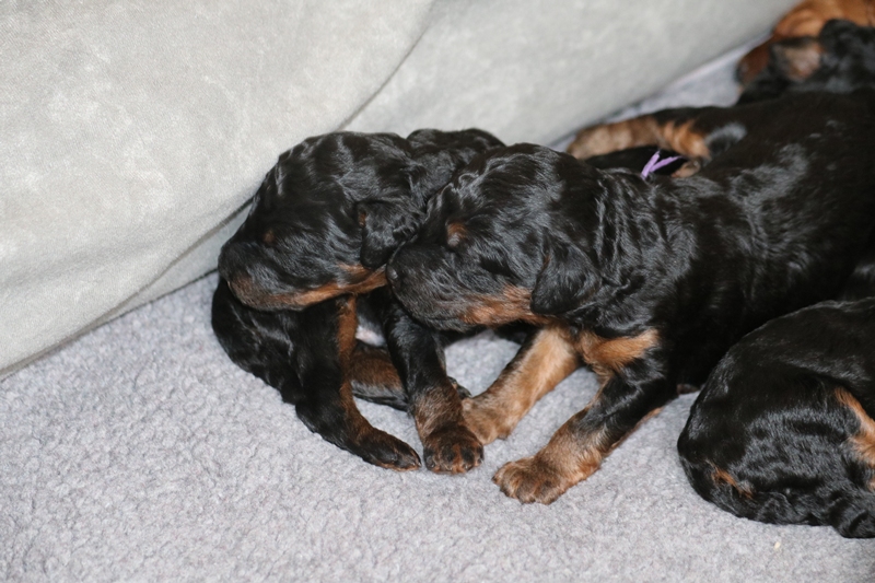 Mathilda und die Welpen haben es mir wirklich leicht gemacht. Alle haben sehr gut zugenommen und sind im Großen und Ganzen sehr friedlich. Tildi hält ihre Welpen vorbildlich sauber und so habe ich noch wenig zu tun.